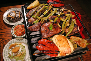 En este post nos cuentan . Pechuga de pollo en salsa guajillo, filete de res a la plancha, chorizo español, arrachera a la plancha, cazuelita de queso fundido, . A combination of carne asada, grilled chicken, shrimp and crispy strips of bacon marinated in guajillo sauce. Served on top of grilled onions. Tenemos una gran variedad de platos, comida mexicana , parrilladas , pescados y mariscos.